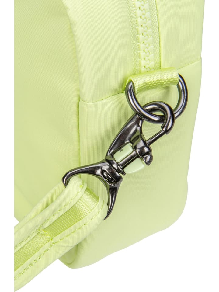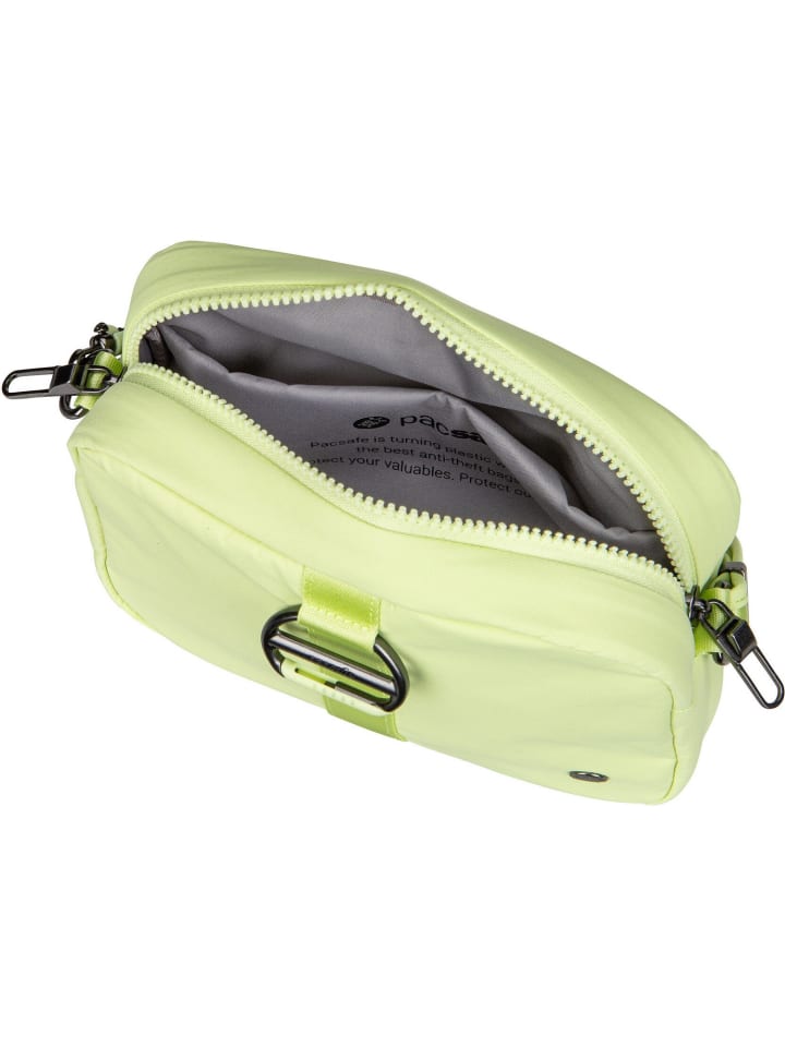 Небольшая, спортивно-элегантная сумка через плечо от Pacsafe из переработанного водоотталкивающего нейлона. Оснащена защитой RFID и запирающимися молниями. Идеально подходит для путешествий и повседневного использования, сочетая в себе стиль, безопасность и экологичность.