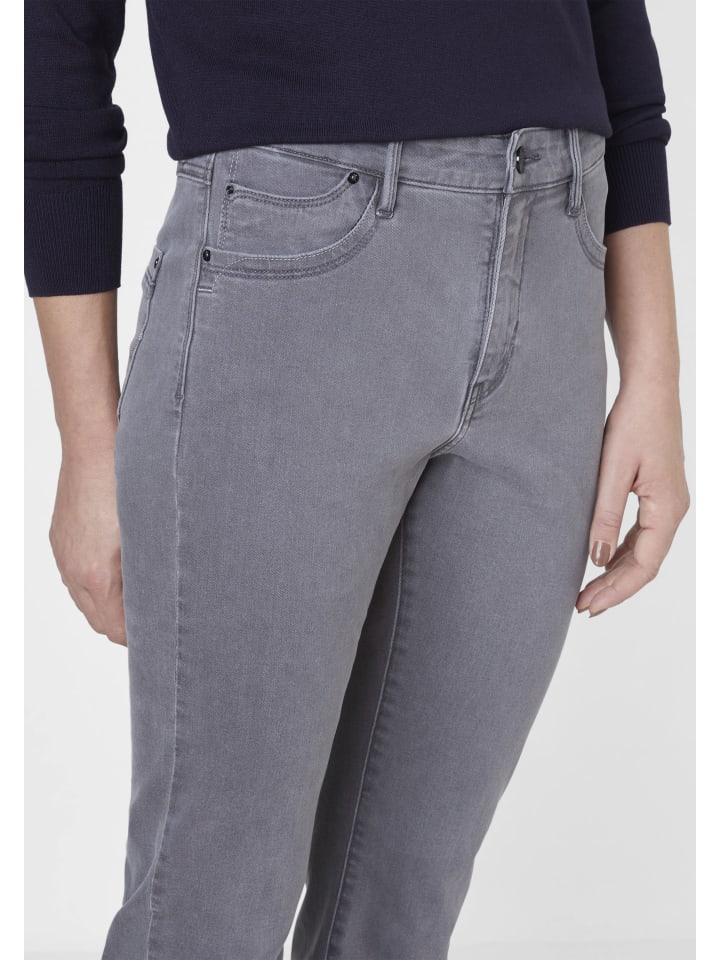 Эти женские джинсы с пятью карманами обеспечивают исключительный комфорт. Это достигается благодаря высокоэластичной ткани Motion & Comfort и оптимальной посадке. Благодаря модной высокой талии и узким брючинам эти брюки подчеркивают женственный силуэт. Модный серый цвет привлекает внимание.