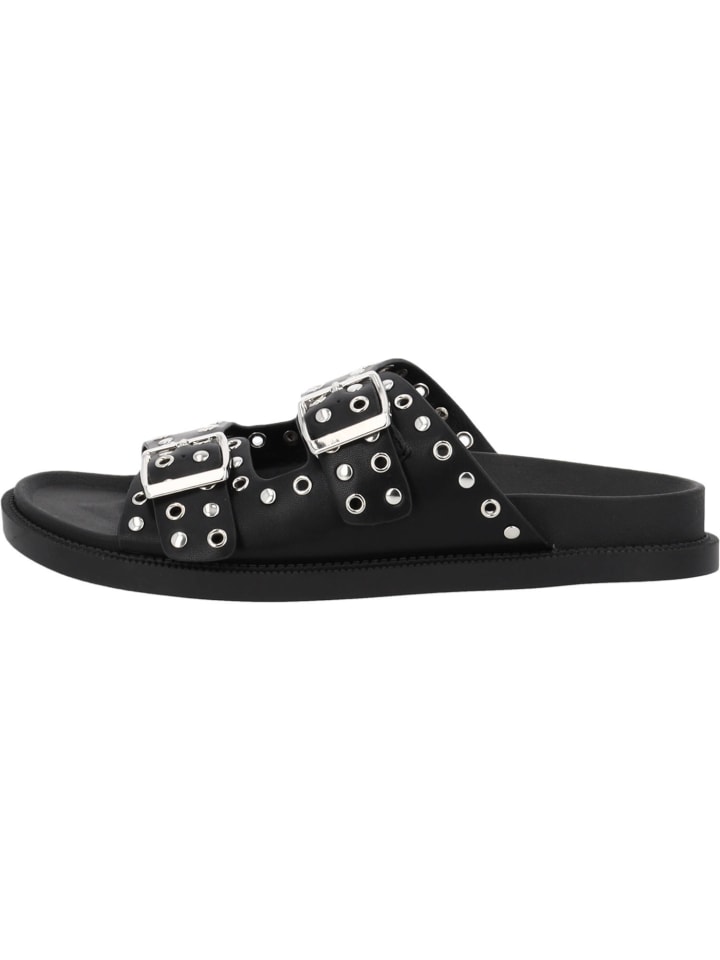 - Стильные детали: Эффектные заклепки и элегантные пряжки придают этим мюлям рок-шик, городской вид - идеально для модных нарядов.