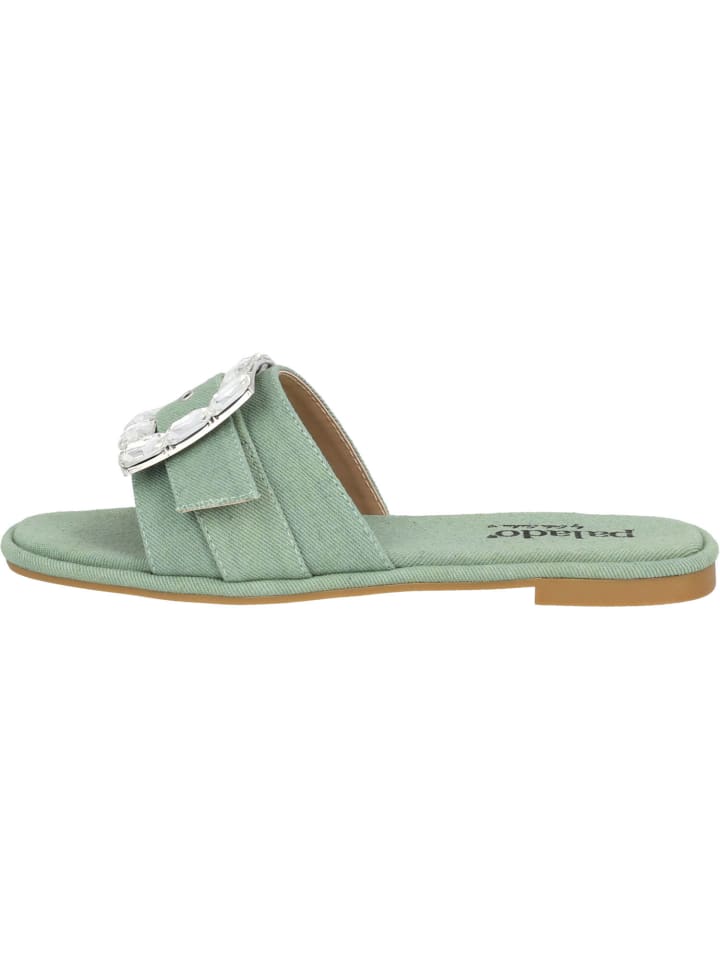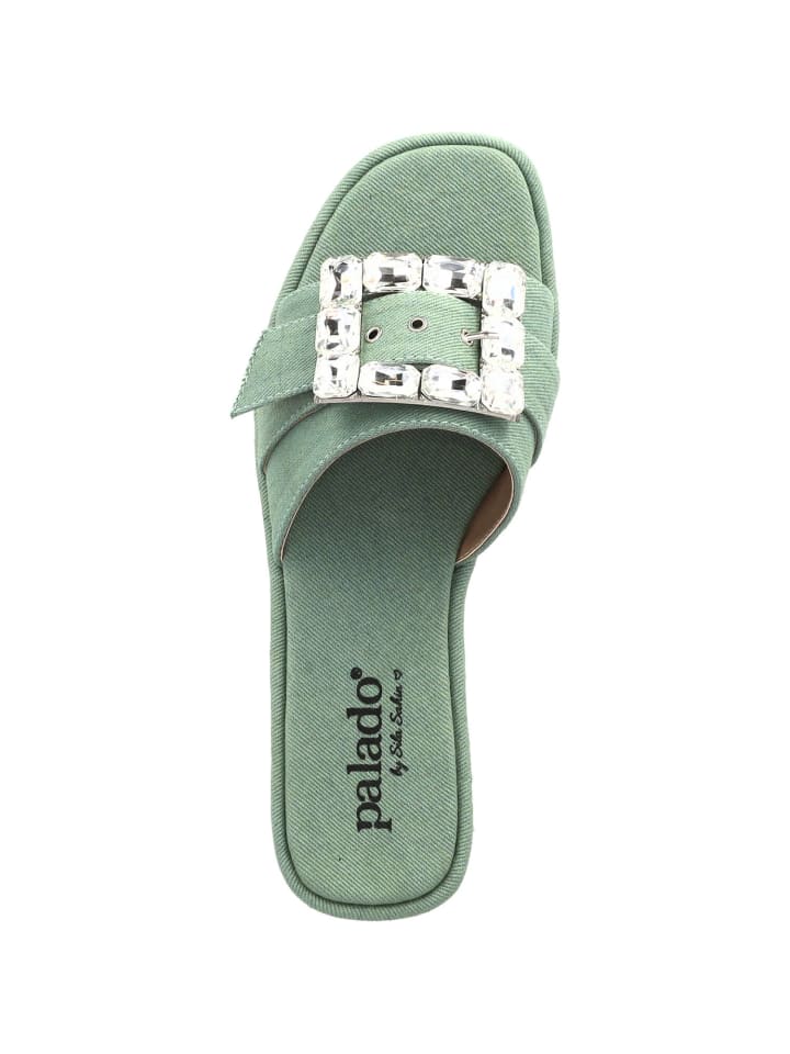 Немного гламура для теплых дней: шлепанцы Palado Menac из эксклюзивной коллекции Palado by Sila Sahin сочетают в себе минималистичный дизайн и яркую элегантность. Верх из текстиля, имитирующего деним, дополнен гламурной декоративной застежкой со сверкающими стразами - настоящая приманка для глаз. Плоская подошва обеспечивает комфортную посадку в солнечные дни. Совет по стилю: Идеально сочетаются с летними платьями или укороченными джинсами и простым топом.