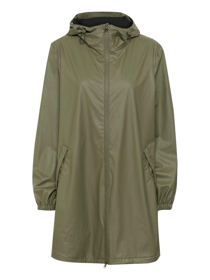 Куртка-дождевик с гладким внешним видом и прямым свободным кроем. Регулируемый капюшон, эластичные манжеты, молния по всей длине и боковые карманы.