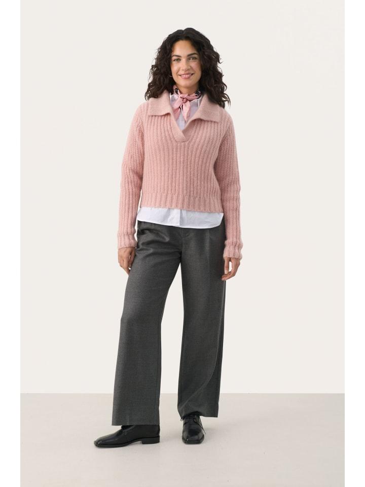 Брюки свободного кроя классического покроя, с характерными стрелками, боковыми карманами и структурированным поясом со шлевками.