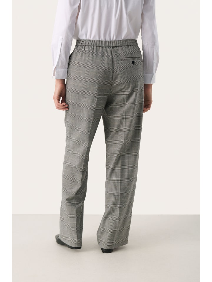 Брюки прямого кроя с видимой клеткой, стандартным поясом и застежкой на одну пуговицу. Незаметные боковые карманы обеспечивают опрятный вид.