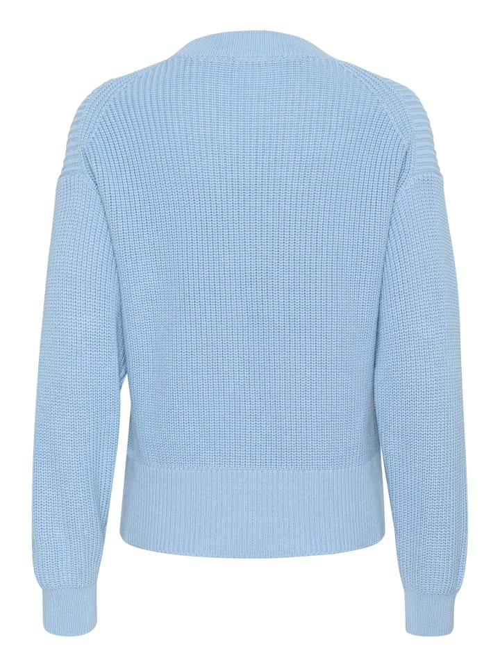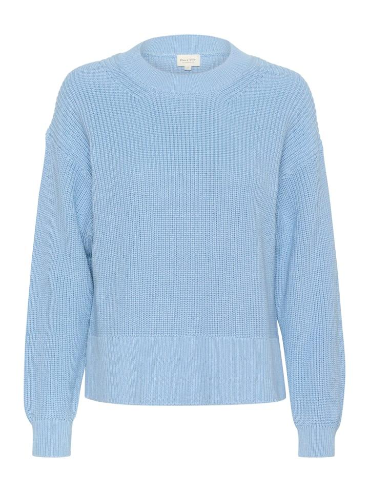 Этот вязаный свитер прямого кроя с непринужденно спущенными плечами. Мягкая текстура, ребристый круглый вырез, подол и манжеты.