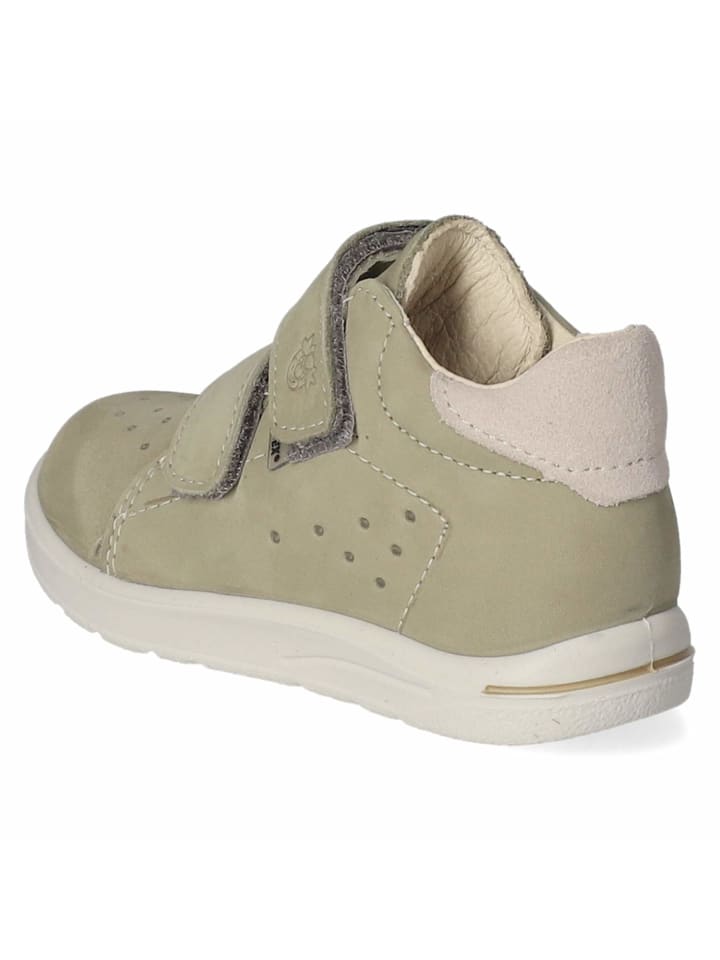Детские туфли Pepino Laas из зеленой замши с практичной застежкой-липучкой легко надевать и снимать. Благодаря технологии Sympatex, туфли водонепроницаемы и дышащие, сохраняя ноги сухими даже в сырую погоду. Усиленная пятка обеспечивает дополнительную устойчивость, а изящные фирменные детали и декоративная строчка дополняют дизайн. Мягкий воротник и съемная мягкая стелька обеспечивают высокий уровень комфорта. Гибкая, нескользящая подошва обеспечивает надежное сцепление с различными поверхностями. Доступно в средней полноте для идеальной посадки.