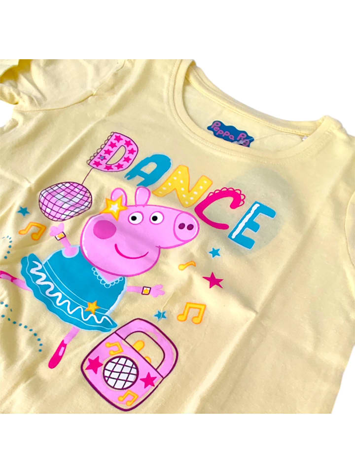 Когда играет музыка, начинаются танцы, и Пеппа присоединяется! Эта жизнерадостная футболка с длинными рукавами будет сопровождать маленьких танцоров на каждом шагу и заставит их глаза сиять. Крупная надпись Dance, с любовью разработанный мотив Пеппы и игривые детали, такие как диско-шар, музыкальные ноты и мягкий эластичный пояс, делают эту футболку любимой. Ярко-розовый или нежно-желтый цвет - идеально подходит для повседневной носки, посещения детского сада и детских праздников! Материал: 100% хлопок. Инструкции по уходу: машинная стирка при 30 градусах, не сушить в стиральной машине, бережная стирка утюгом.