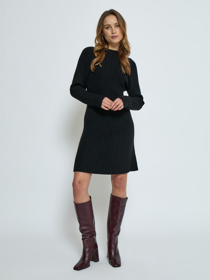 Облегающее платье с длинными рукавами из трикотажа в рубчик идеально подходит для повседневных образов этой осенью. Платье Amabel с высоким вырезом горловины придает элегантность облегающему крою.