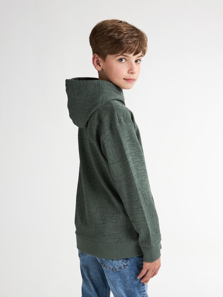 Худи для мальчиков свободного кроя. Эта толстовка простая и функциональная, идеально подходит для любого случая. Толстовка с принтом по всей поверхности. Свободный крой. Передний карман для дополнительного комфорта и хранения. Небольшой логотип на груди для создания сдержанного образа. Состав: 95% хлопок, 5% эластан.