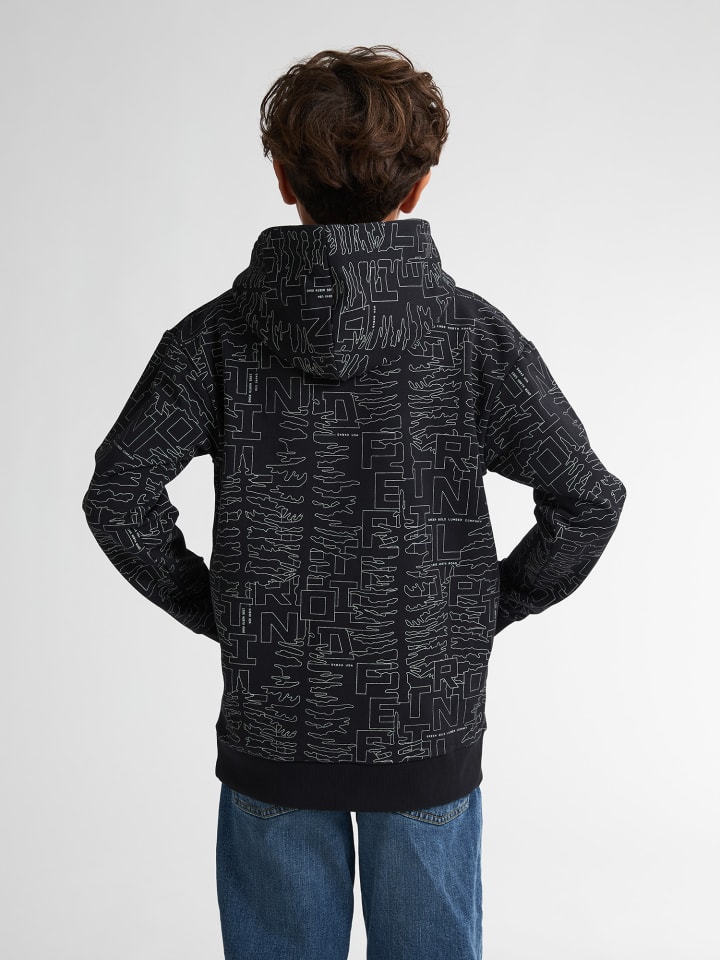 Худи для мальчиков свободного кроя. Эта толстовка простая и функциональная, идеально подходит для любого случая. Толстовка с принтом по всей поверхности. Свободный крой. Передний карман для дополнительного комфорта и хранения. Небольшой логотип на груди для создания сдержанного образа. Состав: 95% хлопок, 5% эластан.