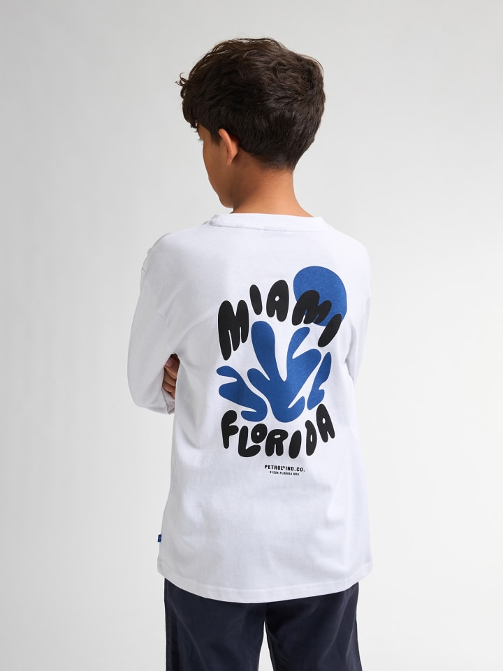 Футболка с принтом, длинными рукавами и круглым вырезом. Эта футболка украшена логотипом на груди и спине. Изготовлена из 100% хлопка. Не знаете, какой размер выбрать? Всегда выбирайте больший. Футболка с длинными рукавами, свободным кроем, круглым вырезом, логотипом, 100% хлопок. Состав: 100% хлопок.