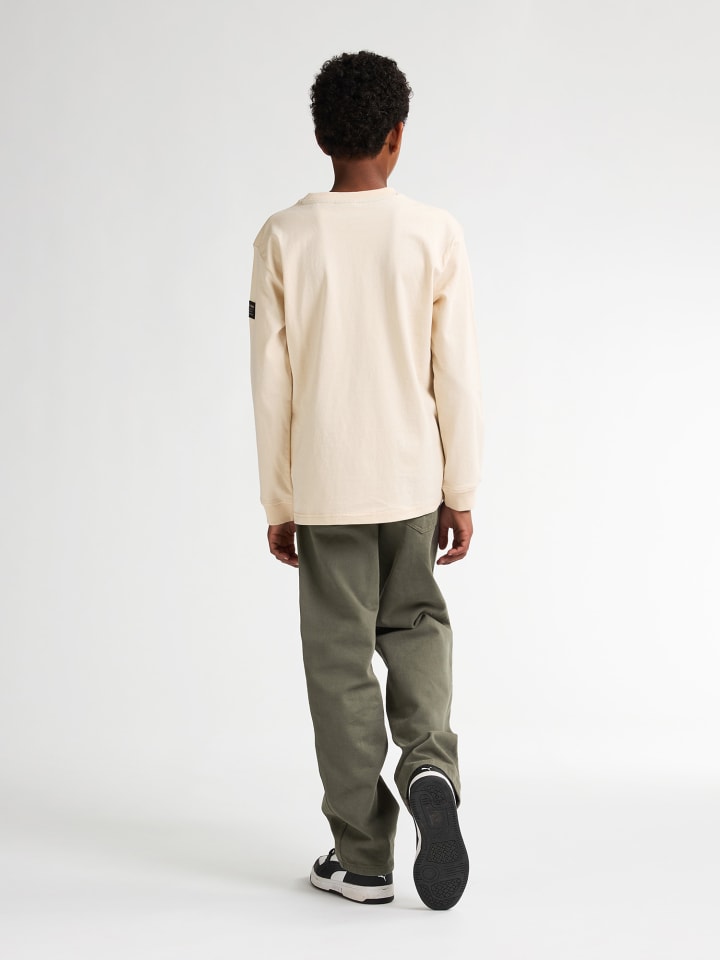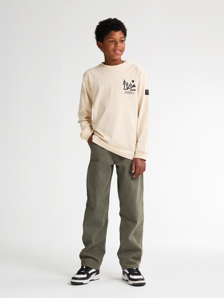 Эта футболка с длинным рукавом для мальчиков идеально подходит для тех дней, когда в футболке слишком прохладно. Минималистичный принт на груди придает футболке вид, вдохновленный отдыхом на природе, идеально подходит для повседневной носки или в качестве слоя под курткой или свитером. Футболка с длинным рукавом для мальчиков. Свободный крой. Круглый вырез. Графический принт на груди. Небольшая аппликация на рукаве. 100% хлопок. Состав: 100% хлопок.