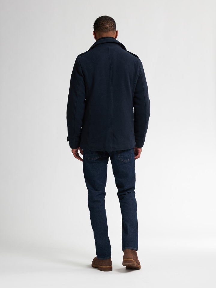 Эта классическая мужская куртка - стильный выбор для холодных дней. Смесовая шерсть и планка с двумя пуговицами обеспечивают тепло и комфорт, а современные детали придают куртке современный вид. Мужская куртка в стиле бушлата. Двубортная застежка спереди создает классический образ. Подкладка на молнии с воротником-стойкой для дополнительного тепла. Изготовлена из 45% переработанного полиэстера, 40% шерсти и 15% полиэстера.