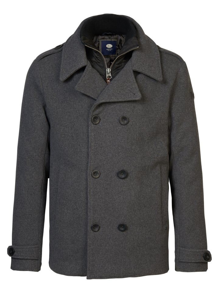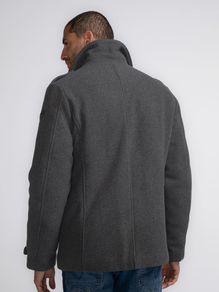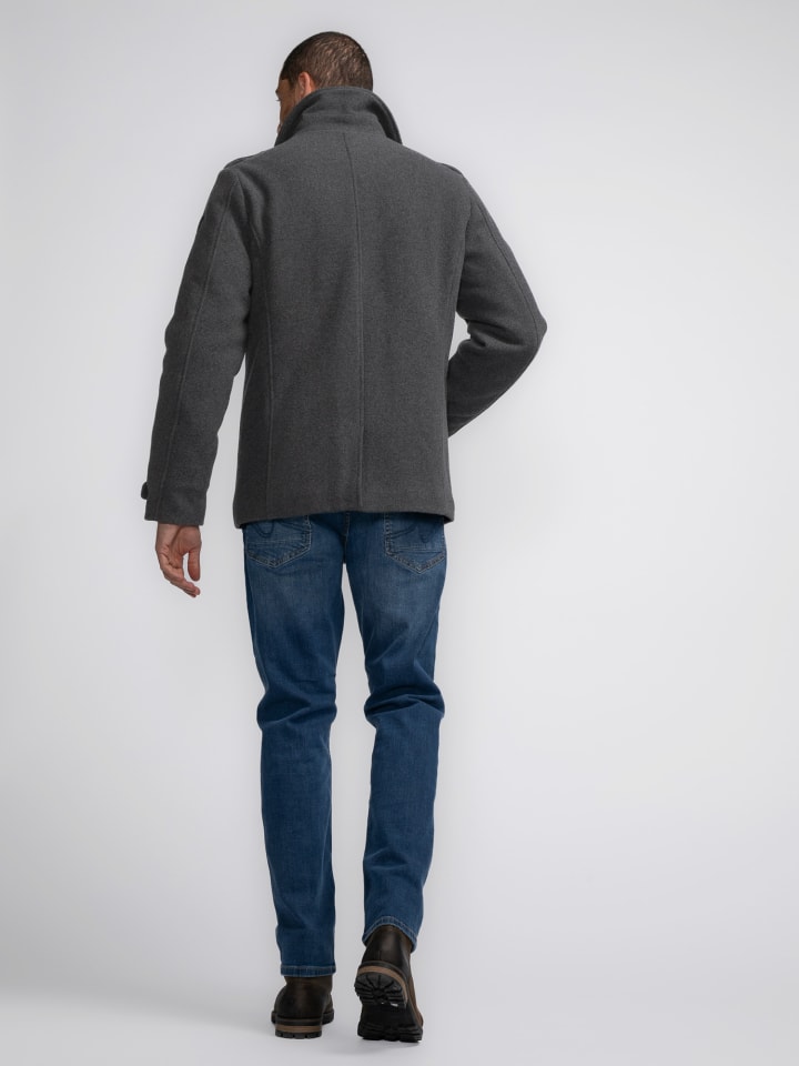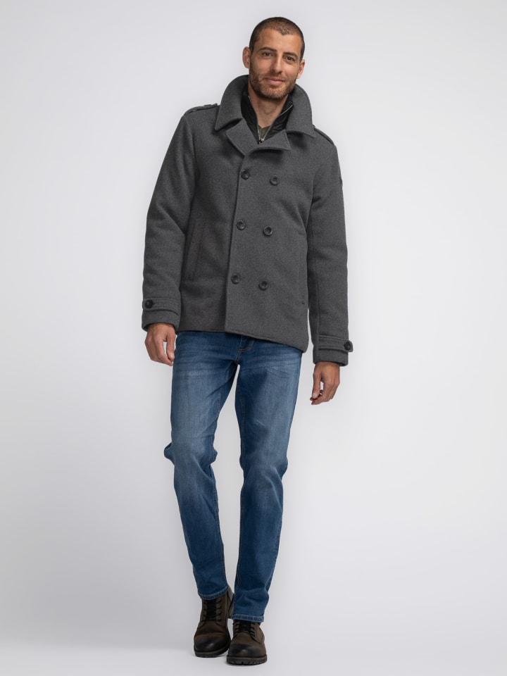 Эта классическая мужская куртка - стильный выбор для холодных дней. Смесовая шерсть и планка с двумя пуговицами обеспечивают тепло и комфорт, а современные детали придают куртке современный вид. Мужская куртка в стиле бушлата. Двубортная застежка спереди создает классический образ. Подкладка на молнии с воротником-стойкой для дополнительного тепла. Изготовлена из 45% переработанного полиэстера, 40% шерсти и 15% полиэстера.
