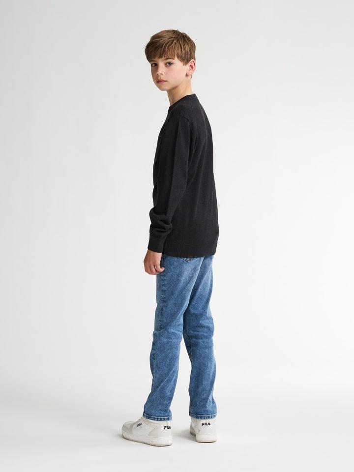 Этот свитер для мальчика - универсальная вещь, которая идеально подходит для любого случая. Круглый вырез: круглый вырез обеспечивает удобную посадку и легко сочетается с другой одеждой. Свободный крой: свитер, изготовленный из 50% хлопка и 50% акрила, обеспечивает комфорт и тепло, идеально подходит для прохладных дней.
