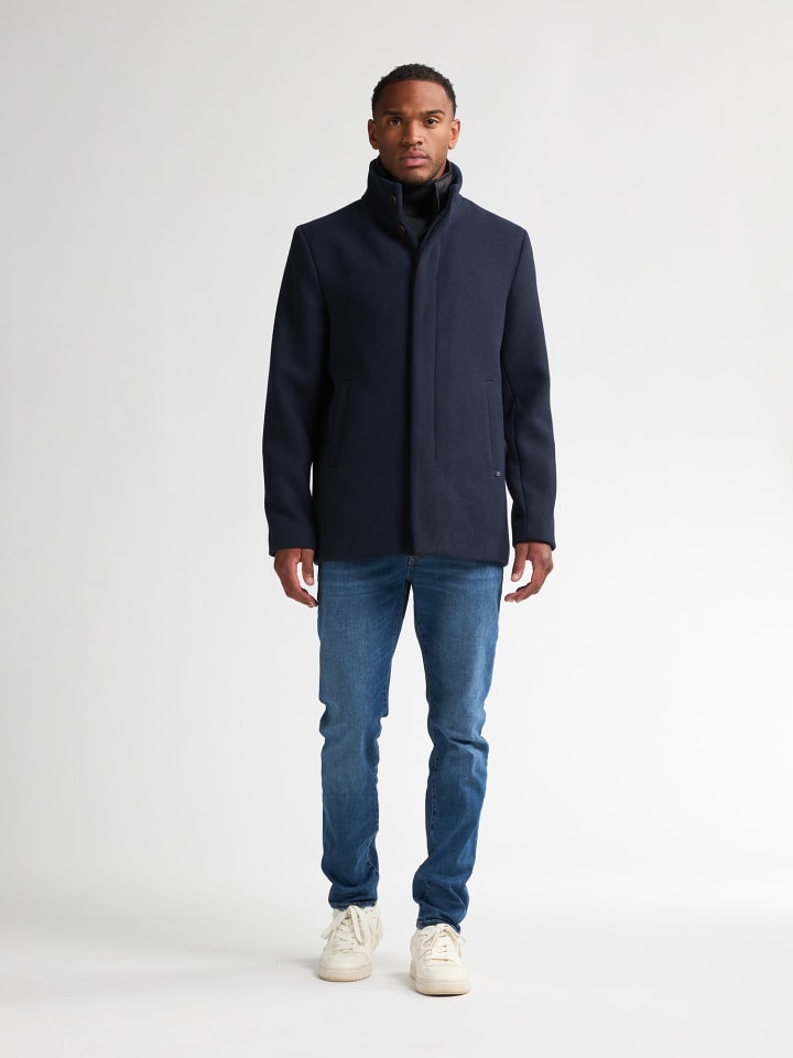 Это мужское шерстяное пальто сочетает в себе стиль и функциональность. Крой тренча и высококачественный материал делают его идеальным выбором для современного мужчины. Мужское шерстяное пальто, крой тренча. Состав: 77% полиэстер и 23% переработанная шерсть. Потайная молния с застежкой на пуговицы для элегантного вида. Воротник-стойка с подкладкой внутри для дополнительного комфорта.
