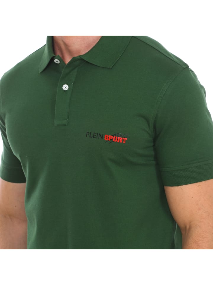 Мужская рубашка-поло с короткими рукавами Plein Sport сочетает в себе классический дизайн с современными деталями, которые отражают неповторимый дух бренда, идеально подходит для тех, кто ищет стиль и комфорт в одном предмете одежды.