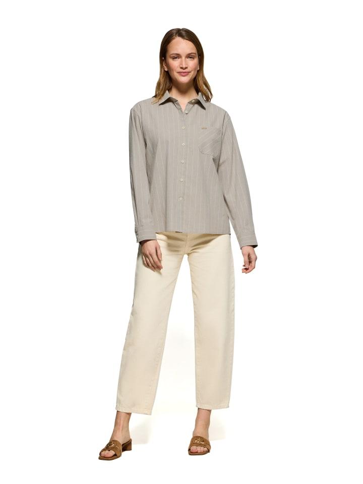 Женская рубашка Scalet, сшитая из свежей льняной ткани, сочетает в себе стиль и комфорт. Уникальный полосатый дизайн с использованием ткани с разнонаправленными полосками придает ей современный и изысканный вид. Свободный крой и элегантный французский воротник идеально дополнят любой повседневный образ.