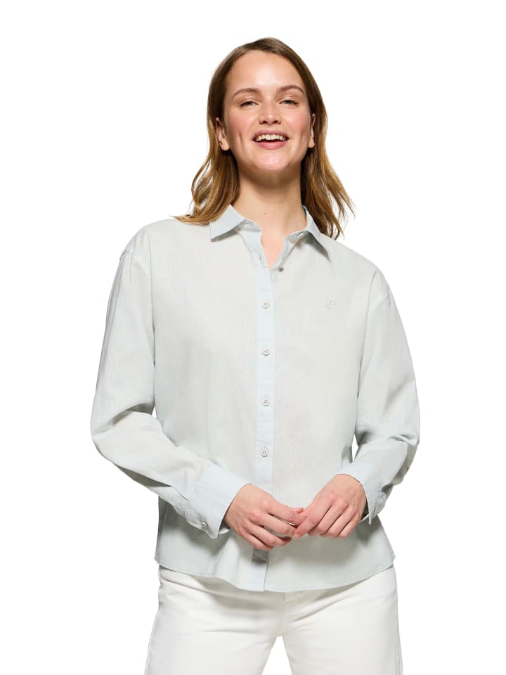 Эта женская рубашка идеально подходит как для повседневной носки, так и для особых случаев. Смесовая ткань из льна и хлопка, французский воротник и свободный крой дополнят любой образ. Изящные детали, такие как пуговицы с логотипом бренда, вышивка в цвет логотипа на торцевой петле и контрастная окантовка на внутренней стороне воротника и манжет, делают эту рубашку неповторимой. На груди вышита монограмма PC.