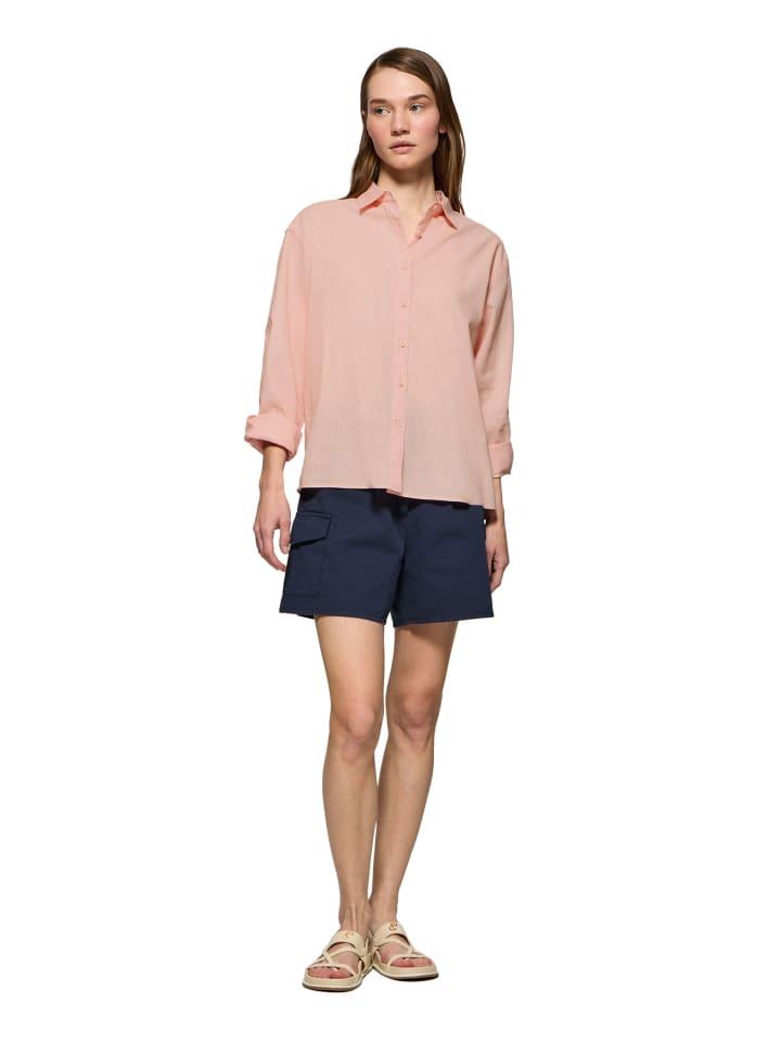 Эта женская рубашка идеально подходит как для повседневной носки, так и для особых случаев. Смесовая ткань из льна и хлопка, французский воротник и свободный крой дополнят любой образ. Изящные детали, такие как пуговицы с логотипом бренда, вышивка в цвет логотипа на торцевой петле и контрастная окантовка на внутренней стороне воротника и манжет, делают эту рубашку неповторимой. На груди вышита монограмма PC.