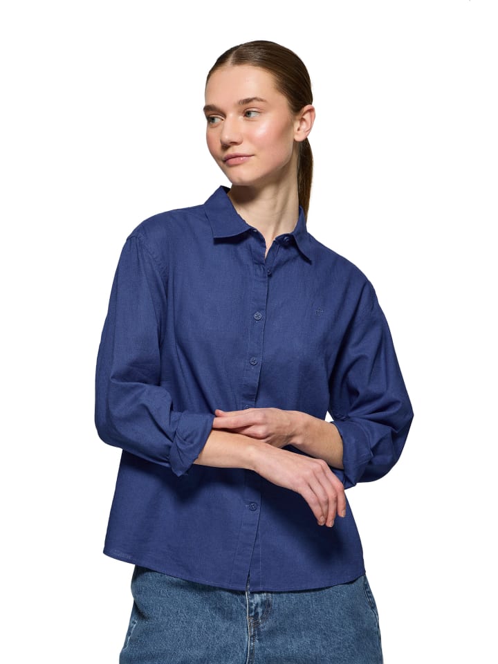 Эта женская рубашка идеально подходит как для повседневной носки, так и для особых случаев. Смесовая ткань из льна и хлопка, французский воротник и свободный крой дополнят любой образ. Изящные детали, такие как пуговицы с логотипом бренда, вышивка в цвет логотипа на торцевой петле и контрастная окантовка на внутренней стороне воротника и манжет, делают эту рубашку неповторимой. На груди вышита монограмма PC.