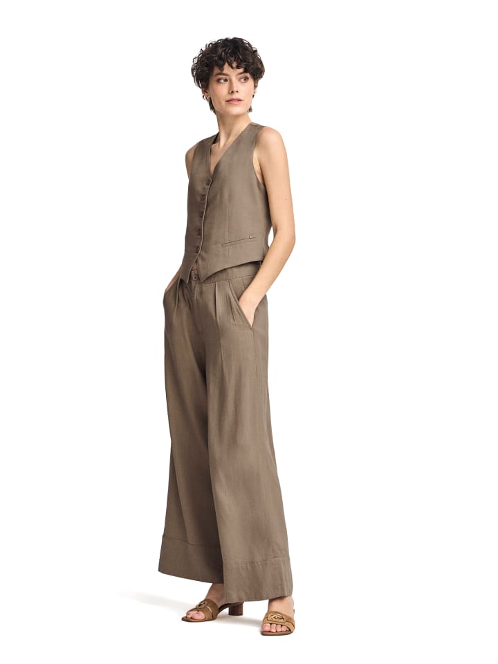 Брюки Deia - универсальная и элегантная модель для женщин, которые ценят комфорт, не жертвуя стилем. Широкий крой обеспечивает свободу движений и удобную посадку, а сочетание хлопка и льна гарантирует свежесть в любое время года. Застежка на пуговицы и молнию, функциональные боковые карманы, жемчужная пуговица Polo Club сзади и логотип на внутренней стороне придают брюкам особый шарм. Идеально сочетаются с жилетом Deia или легкой блузкой для создания изысканного образа.
