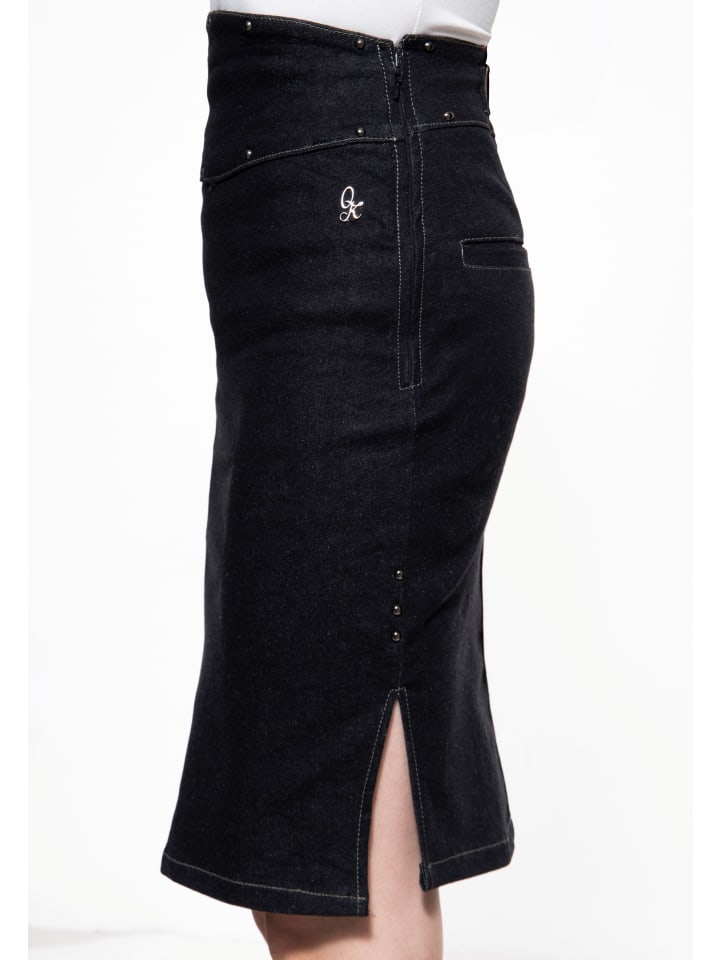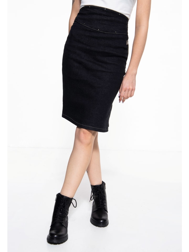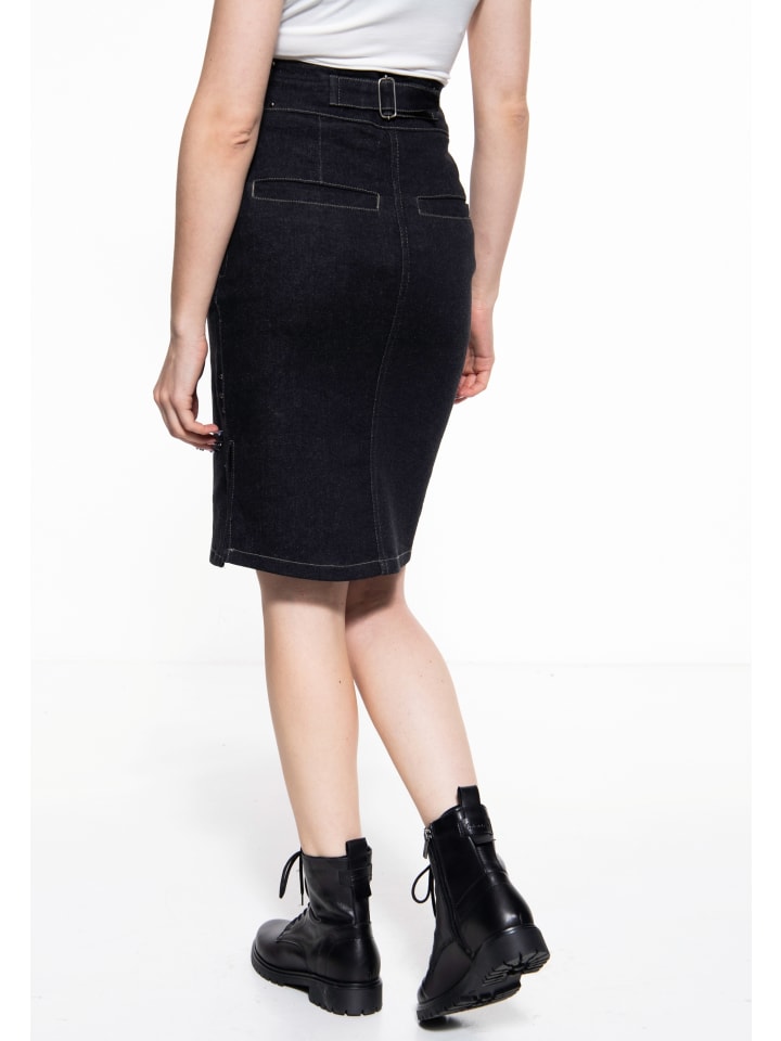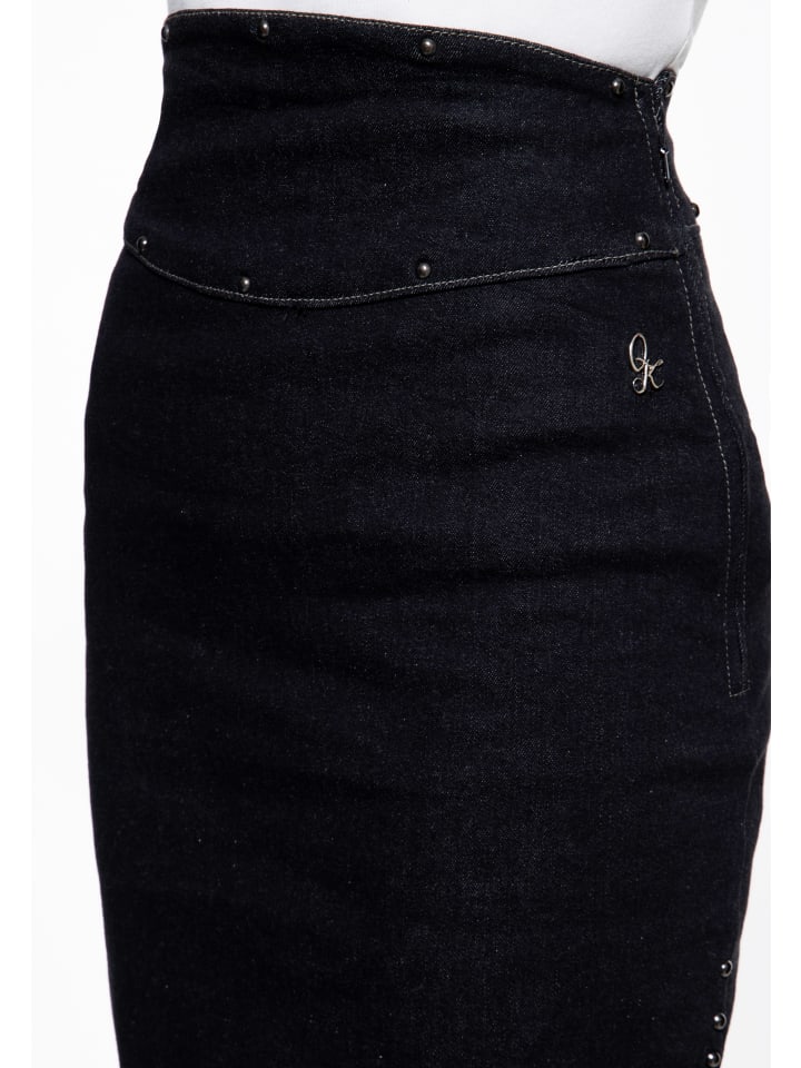 Джинсовая юбка-карандаш от Queen Kerosin с ее эффектным дизайном добавит рок-нотку вашему образу. Юбка-карандаш облегает фигуру благодаря широкому асимметричному поясу, завышенному спереди, что создает выразительный силуэт. Небольшие заклепки, задние карманы и изящный металлический логотип сбоку дополняют образ. Металлическая пряжка сзади на поясе обеспечивает индивидуальную посадку. Боковая молния с застежкой на крючок позволяет легко надевать юбку. Благодаря эластичной хлопковой смесовой ткани и разрезу сзади джинсовая юбка обеспечивает оптимальный комфорт и свободу движений.