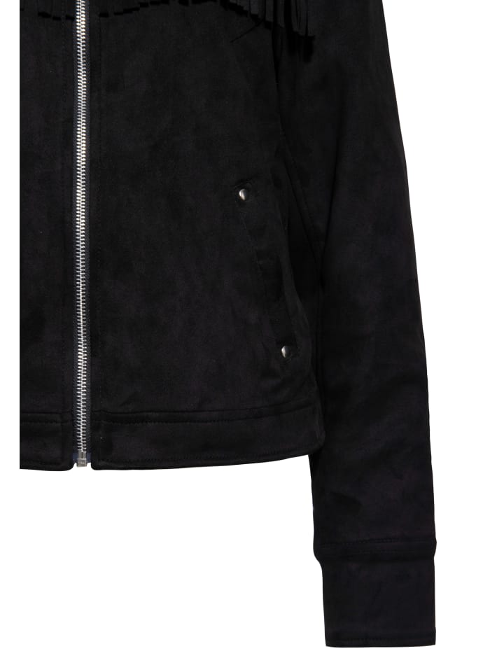 Бахрома, вестерн-стиль и немного дерзкого стиля - в этой куртке есть все, что вам нужно. Благодаря модному замшевому крою и длинной бахроме на груди, спине и рукавах, она создает образ настоящей ковбойши. Классический воротник, кнопки на манжетах и прочная молния спереди подчеркивают ее брутальный вид. Два боковых кармана на кнопках вмещают мелочи. И самое главное: в комплекте идет юбка - для тех, кто хочет выразить свой стиль с полной силой вестерна.