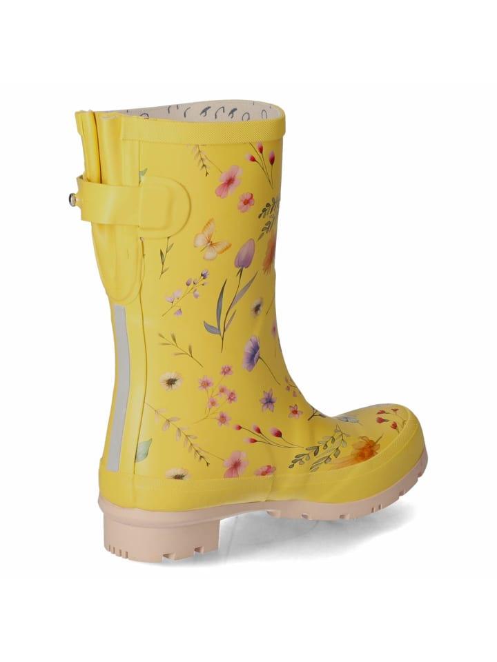 Женские резиновые сапоги Rajn BUTTERFLY свежего желтого цвета добавят красок и веселья в дождливые дни. Игривый дизайн с цветочными элементами и принтом в виде бабочек делает эти сапоги настоящей приманкой для глаз, идеально подходящими для прогулок за городом или повседневной носки в сырую погоду. Изготовленные из прочного водоотталкивающего синтетического материала, они надежно сохраняют вас сухими. Усиленная рама стопы и стабилизированная пятка обеспечивают дополнительную поддержку и гарантируют комфортное ношение. Для удобства надевания и индивидуальной регулировки голенище оснащено регулируемым ремешком с декоративной деталью сзади. Изящная эмблема бренда стильно дополняет образ. Легкая текстильная подкладка внутри обеспечивает комфортный микроклимат стопы даже при длительном ношении. Мягкая съемная стелька дополнительно повышает комфорт и может быть легко заменена при необходимости. Гибкая, нескользящая подошва обеспечивает надежное сцепление даже на скользких или мокрых поверхностях. Благодаря яркому дизайну и продуманной функциональности эти резиновые сапоги станут идеальным спутником в любую погоду.