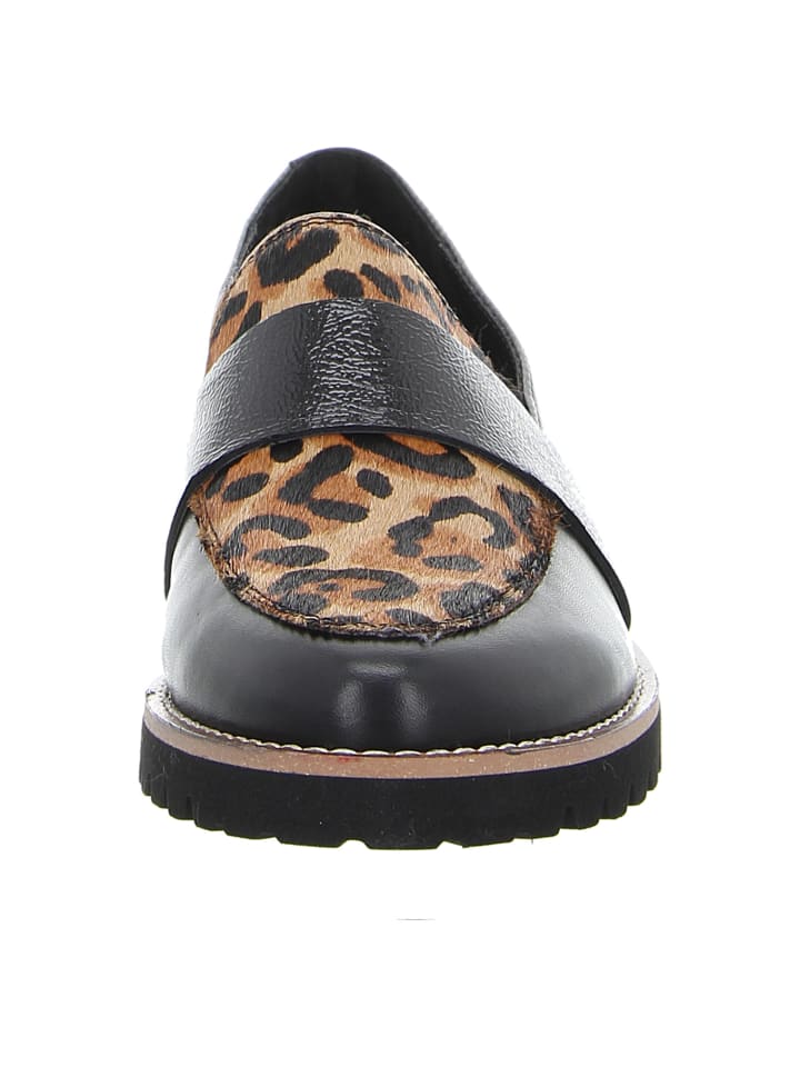 Классические черные тапочки Tekla-01 от Regarde le Ciel, выполненные в классическом стиле лоферов, покорят всех женщин как внешним видом, так и удобством. Декоративный леопардовый принт на передней части стопы особенно привлекает внимание. Элегантная кожа делает эти низкие туфли настоящей классикой, которую можно сочетать со многими нарядами. Мягкая кожаная стелька обеспечивает комфортный микроклимат и не утомляет при ходьбе. Черные туфли Regarde le Ciel - настоящая универсальная вещь, которая обязательно должна быть в вашем обувном шкафу!