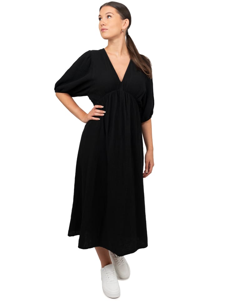 Женское платье из высококачественной муслиновой ткани с модным жатым эффектом для повседневного образа.