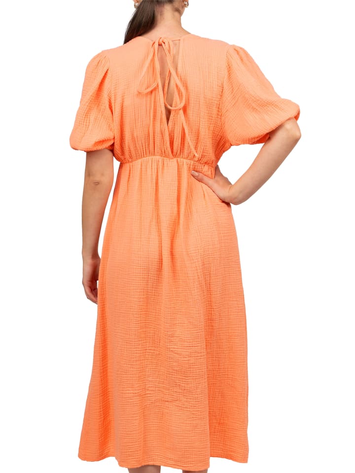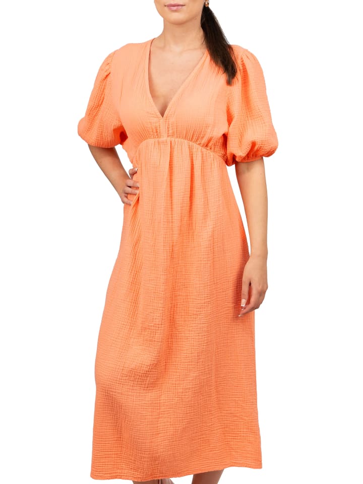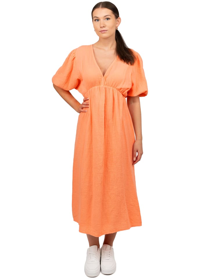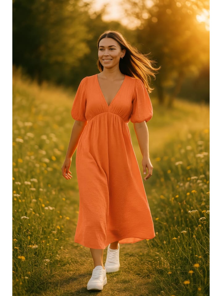Женское платье из высококачественной муслиновой ткани с модным жатым эффектом для повседневного образа.
