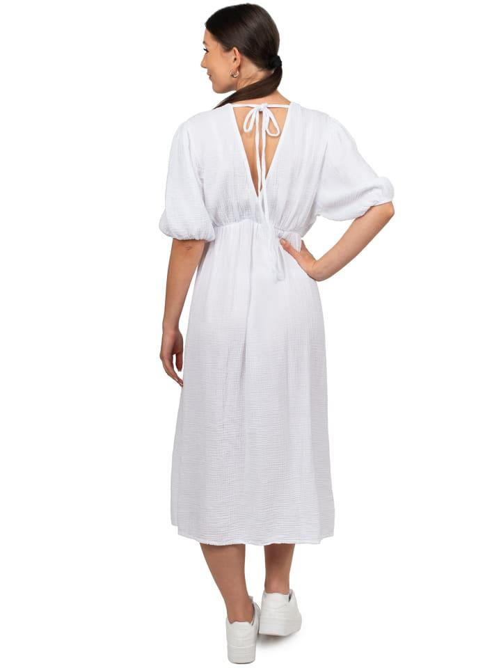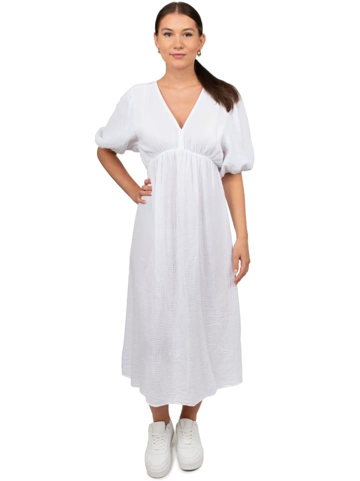 Женское платье из высококачественной муслиновой ткани с модным жатым эффектом для повседневного образа.