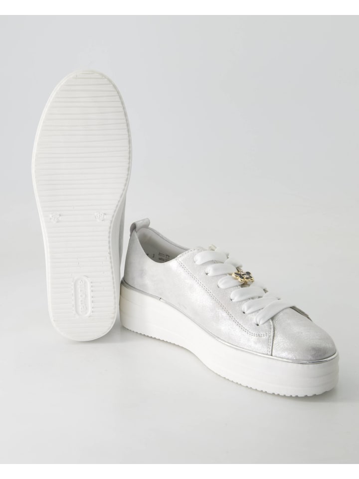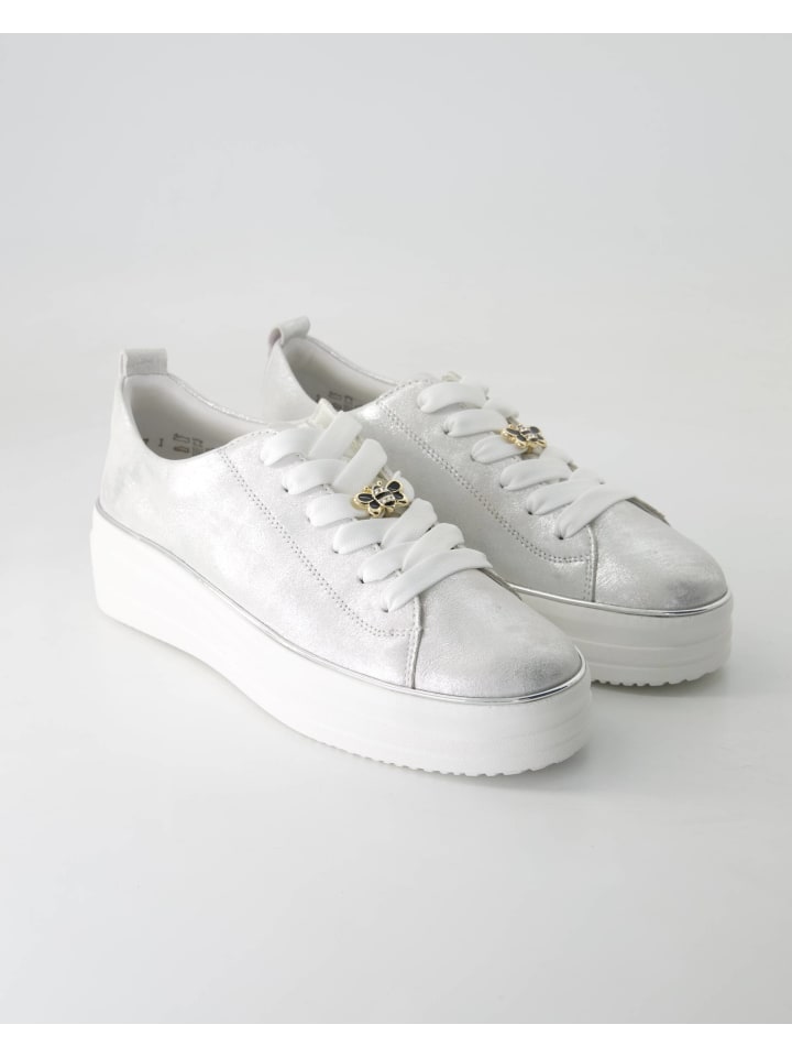 Женские кроссовки Remonte D1C03-81 серебристого цвета впечатляют кожаным верхом и текстильной подкладкой Lite'n Soft. Каблук-платформа высотой 3-5 см обеспечивает стильный внешний вид и комфорт. Идеально подходит для модниц, которые ценят прочность и легкость. Блестящий дизайн с бабочками делает эти кроссовки идеальными для отдыха и повседневной носки. Приобретите кроссовки Remonte серебристого цвета прямо сейчас и наслаждайтесь комфортом и следите за модными тенденциями.