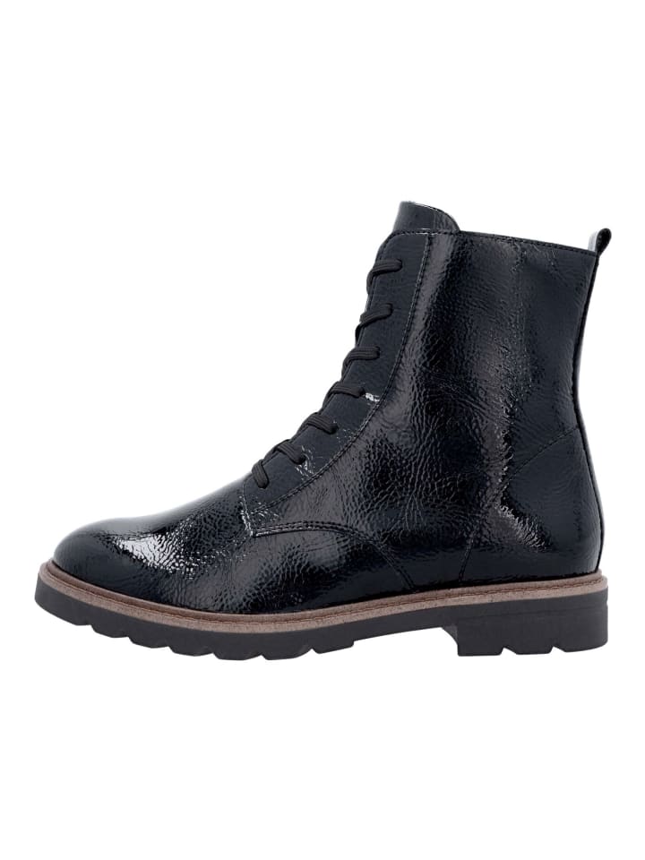 Женские ботильоны Remonte D2Q71 сочетают в себе блестящий лакированный синтетический верх с практичной шнуровкой и боковой молнией. Это позволяет не только легко надевать и снимать обувь, но и регулировать ее посадку. Удобная текстильная подкладка и съемная стелька обеспечивают высокий уровень комфорта, а легкая, слегка профилированная подошва гарантирует устойчивость и надежную посадку!