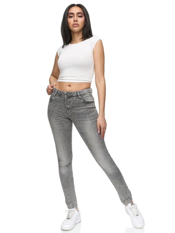 Эти облегающие джинсы REPUBLIX сочетают в себе модный дизайн и идеальную посадку. Особая изюминка: застежка на видимые пуговицы на ширинке, которая придает классическому крою современный, слегка игривый вид.