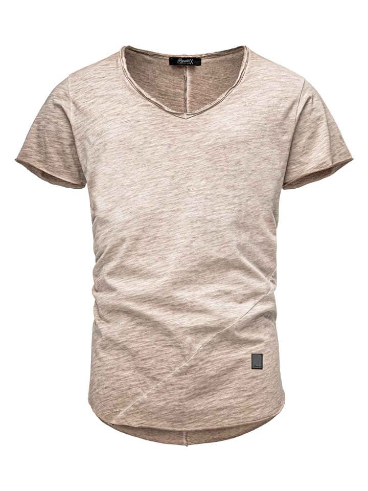 Мужская футболка REPUBLIX впечатляет современным, слегка потертым видом и эффектным V-образным вырезом с открытыми швами - идеально подходит для стильных повседневных образов с характером. Легкая потертость, диагональные швы и закругленный край подчеркивают индивидуальный стиль и делают эту футболку по-настоящему привлекательной.