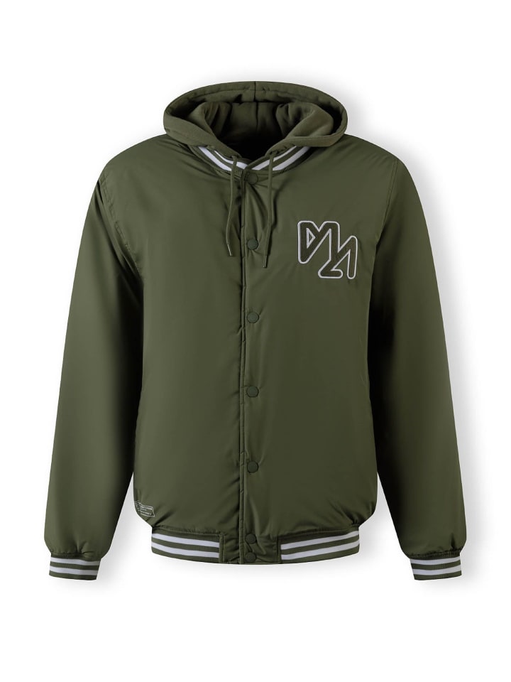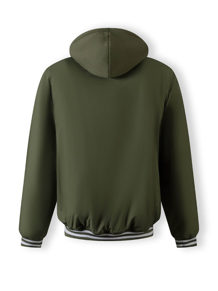 Эта переходная куртка в бейсбольном стиле украшена спортивными контрастными полосками на манжетах, подоле и капюшоне. Капюшон из трикотажного материала отстегивается на пуговицах и регулируется шнурком. Сочетание карманов на молнии и кнопках обеспечивает практичность. Стильная модель с функциональными деталями.