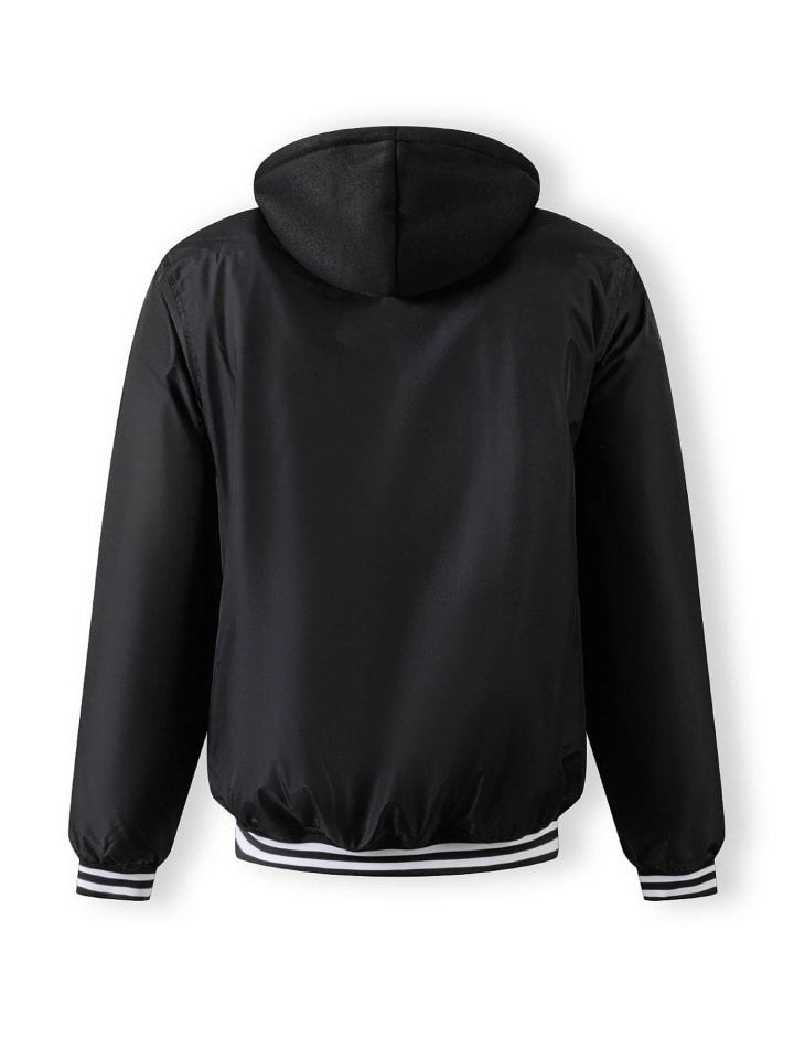 Эта переходная куртка в бейсбольном стиле украшена спортивными контрастными полосками на манжетах, подоле и капюшоне. Капюшон из трикотажного материала отстегивается на пуговицах и регулируется шнурком. Сочетание карманов на молнии и кнопках обеспечивает практичность. Стильная модель с функциональными деталями.