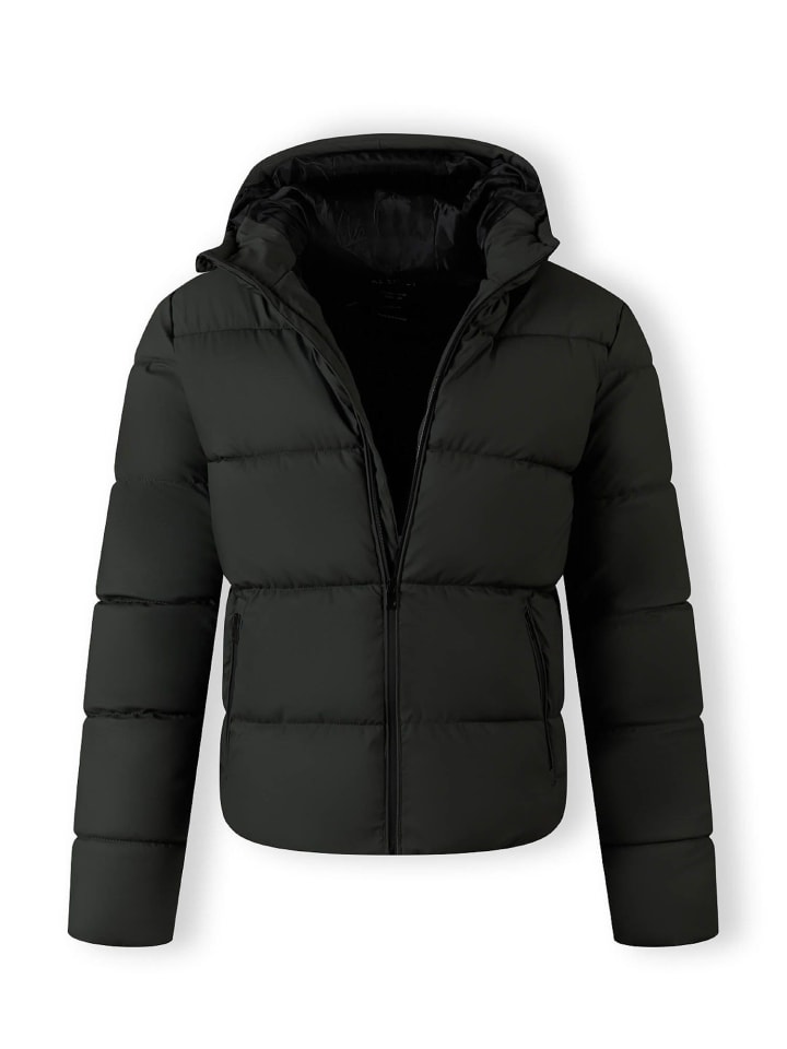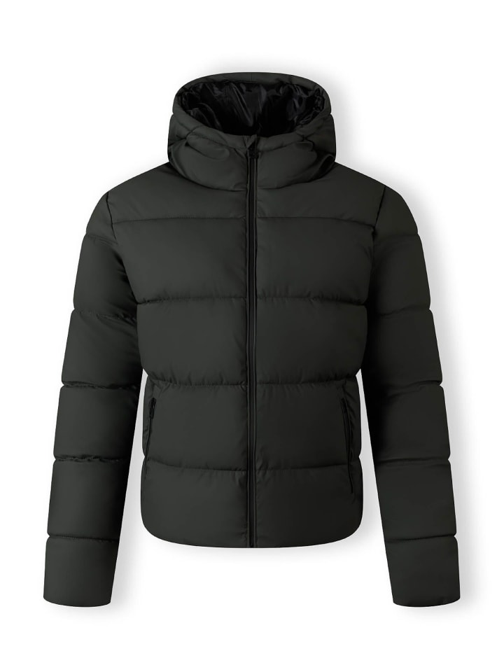 Куртка на подкладке с высоким воротником-стойкой, эластичными манжетами и практичной застежкой-молнией спереди. Два боковых кармана на молнии вмещают мелкие предметы. Внешний материал способствует отводу воды. Контрастная подкладка внутри и нашивка на рукаве дополняют дизайн. Идеально подходит для переходного периода.