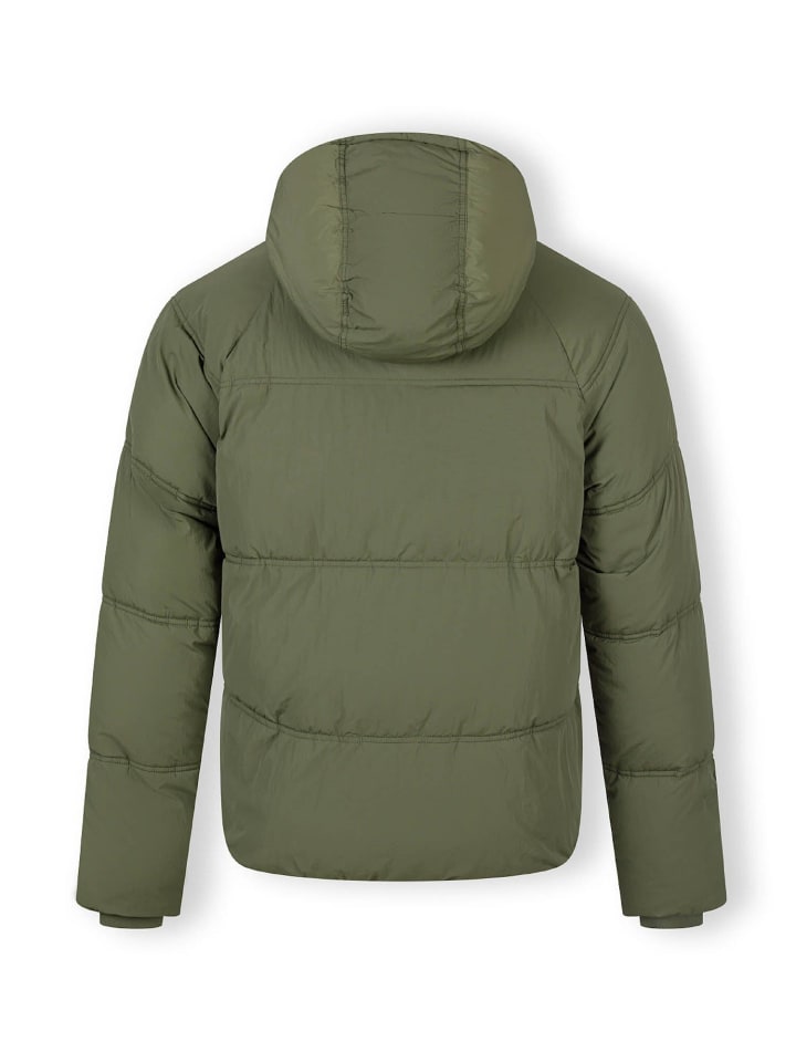 Стеганая куртка на легкой подкладке с рукавами реглан и высоким воротником-стойкой для максимального комфорта. Регулируемый капюшон на шнурке защищает от ветра. Эластичные манжеты и подол обеспечивают плотную посадку. Боковые карманы на молнии вмещают мелкие предметы. Эмблема на рукаве дополняет спортивный образ.