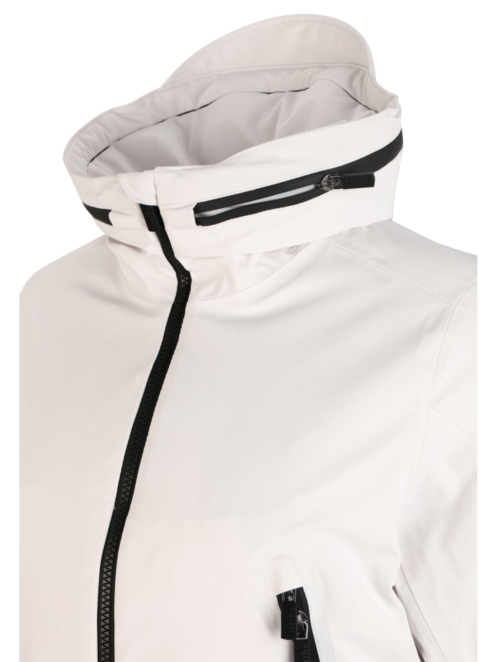 - Выдвижной капюшон в широком воротнике с внешней водонепроницаемой молнией и невидимой внутренней молнией.