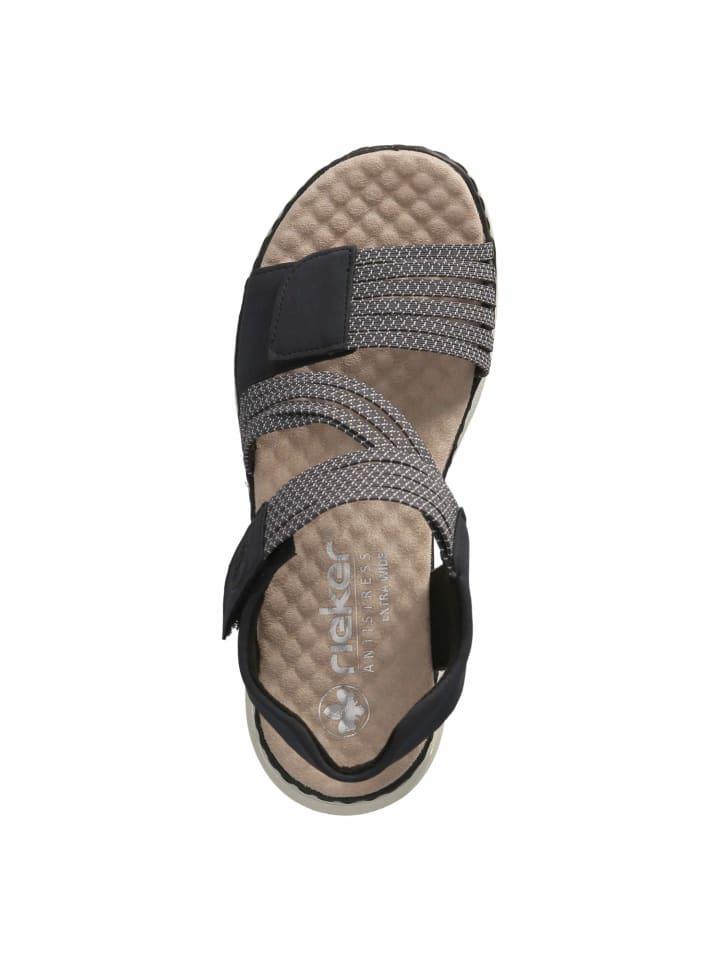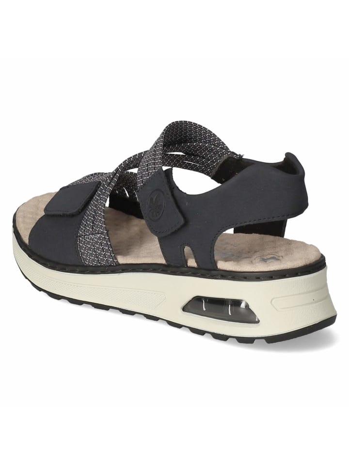 Эти синие женские сандалии Rieker из смеси текстиля и синтетических материалов отличаются удобным и стильным дизайном. Две практичные застежки-липучки позволяют регулировать посадку, а эластичные ремешки обеспечивают дополнительную поддержку и гибкость. Мягкая стелька обеспечивает комфортную посадку даже в долгие летние дни. Гибкая нескользящая подошва гарантирует надежное сцепление и устойчивость при ходьбе. Эти сандалии - идеальный выбор для теплого времени года, как для повседневной носки, так и для спокойного отдыха.