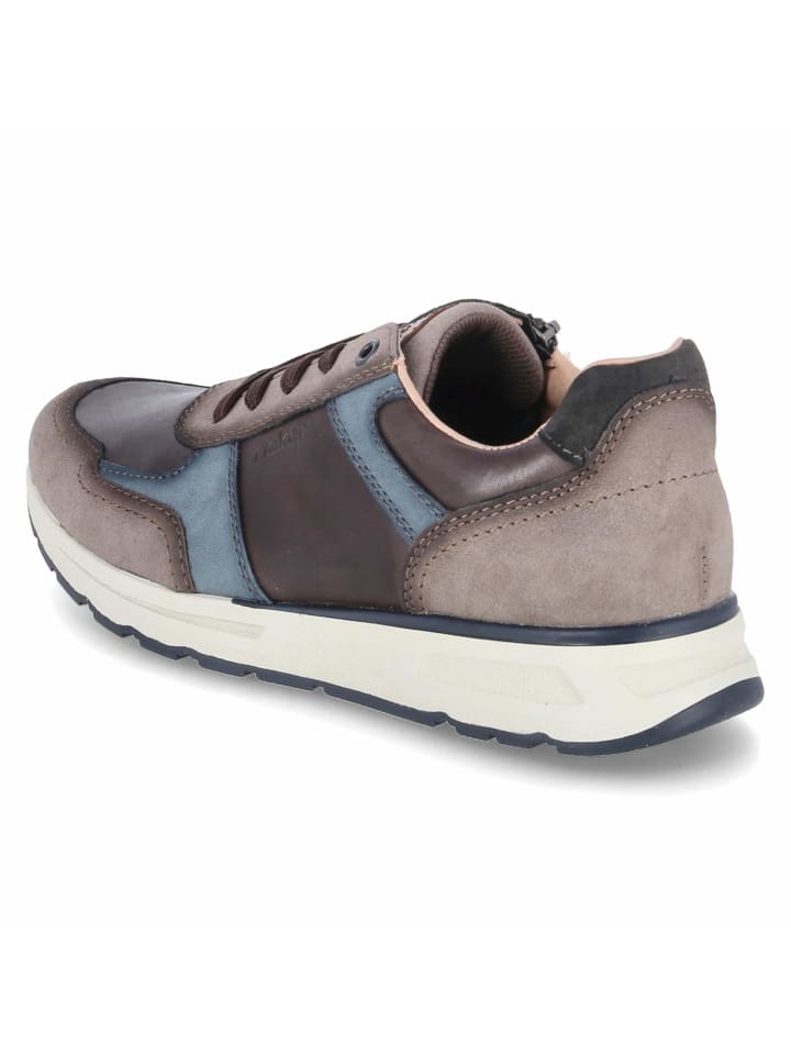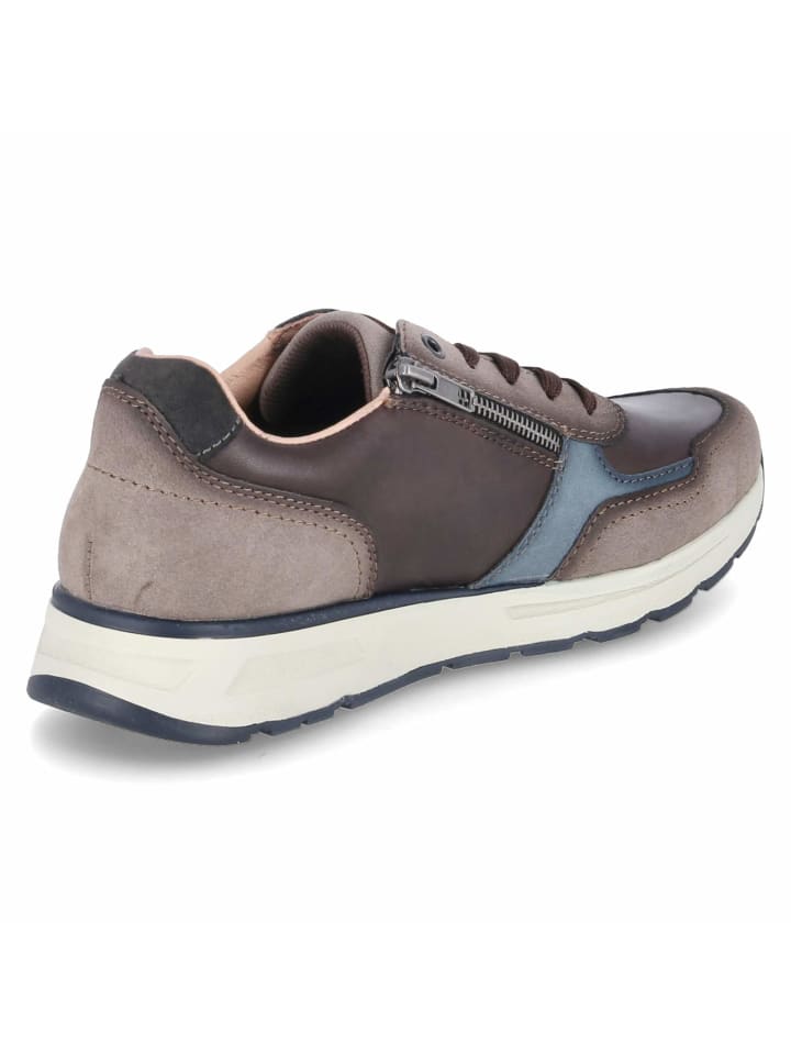 Эти мужские низкие кроссовки Rieker из коричневого комбинированного материала из кожи и синтетического материала сочетают в себе спортивную элегантность и функциональный комфорт. Синие элементы добавляют изящные акценты и придают дизайну современный вид. Сочетание шнуровки и молнии обеспечивает легкость надевания и снимания, а также идеальную посадку. Усиленные носок и пятка обеспечивают дополнительную поддержку и устойчивость. Мягкий бортик и съемная стелька гарантируют высокий уровень комфорта. Гибкая, нескользящая подошва обеспечивает надежное сцепление и делает эти кроссовки идеальными для повседневной жизни и отдыха.
