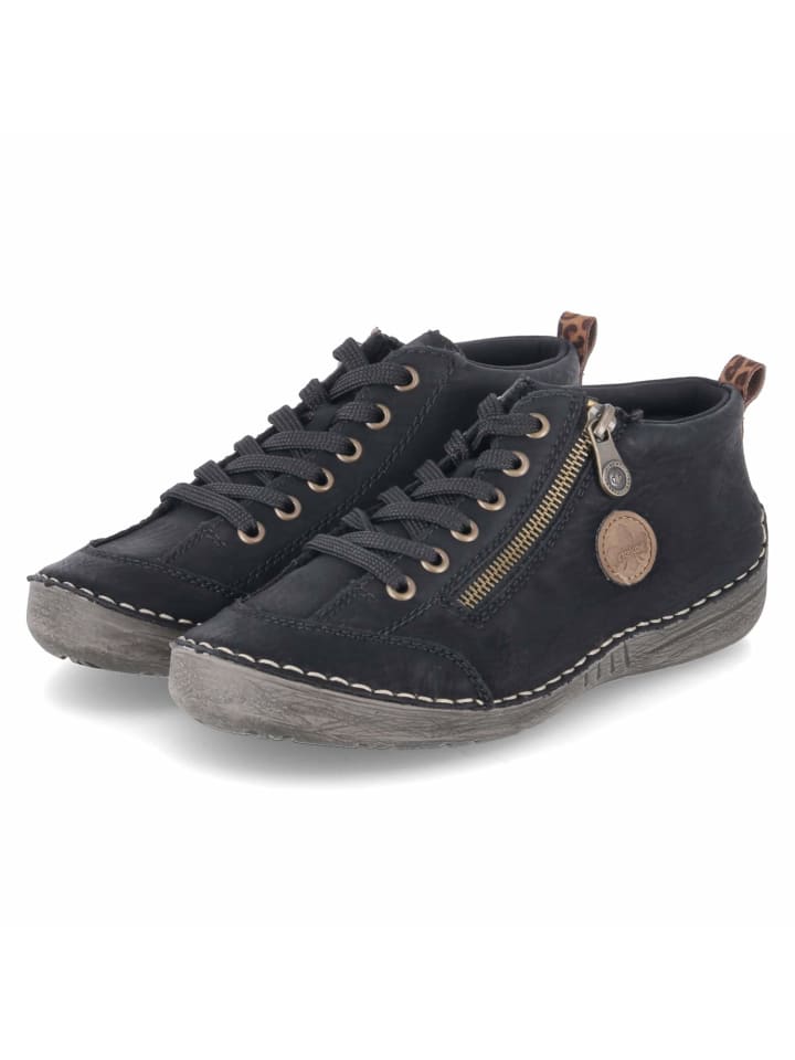 Эти женские низкие ботинки от Rieker сочетают в себе сдержанную элегантность и повседневную практичность. Черный синтетический материал с легкой в уходе поверхностью сохраняет долговечный, изысканный вид, а круглый носок подчеркивает вневременную форму. Сочетание шнурков и молнии обеспечивает удобное надевание и надежную посадку. Свободный, легкий крой защищает каждый шаг, поддерживаемый гибкой подошвой, которая способствует естественному перекату. Легкая подкладка обеспечивает комфорт в прохладные дни, а текстильная стелька обеспечивает мягкую поддержку. Усиленные области носка и пятки добавляют дополнительную устойчивость в повседневной носке. Благодаря стандартной посадке эту модель легко спланировать. Модный совет: монохромный образ с черным денимом и кашемировым кардиганом для сдержанности; В качестве альтернативы, наденьте клетчатые брюки и жакет из букле для создания модного образа.
