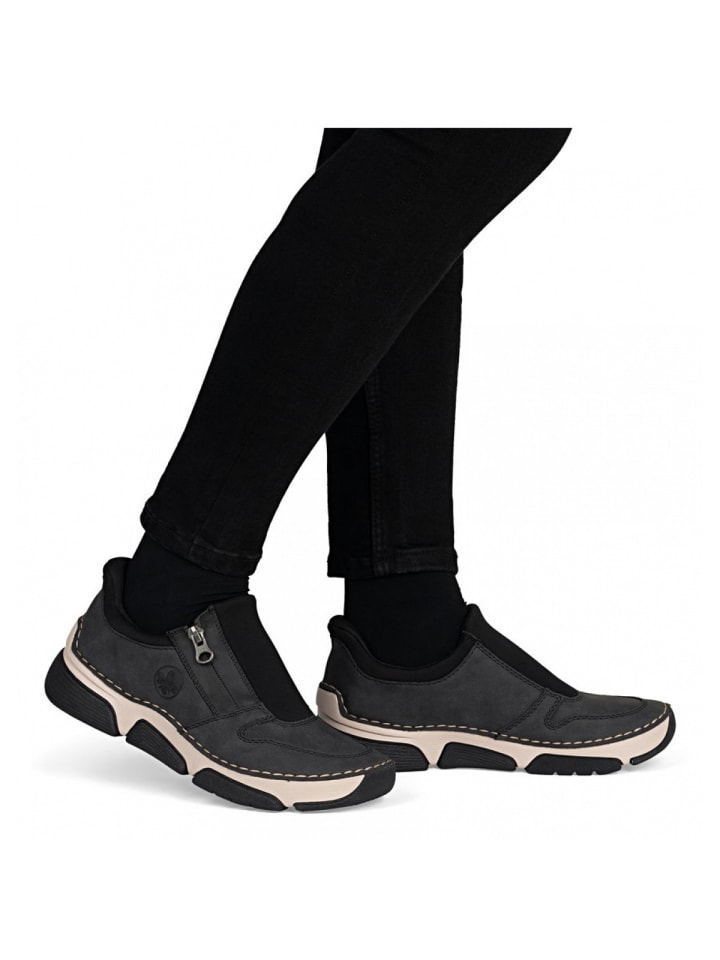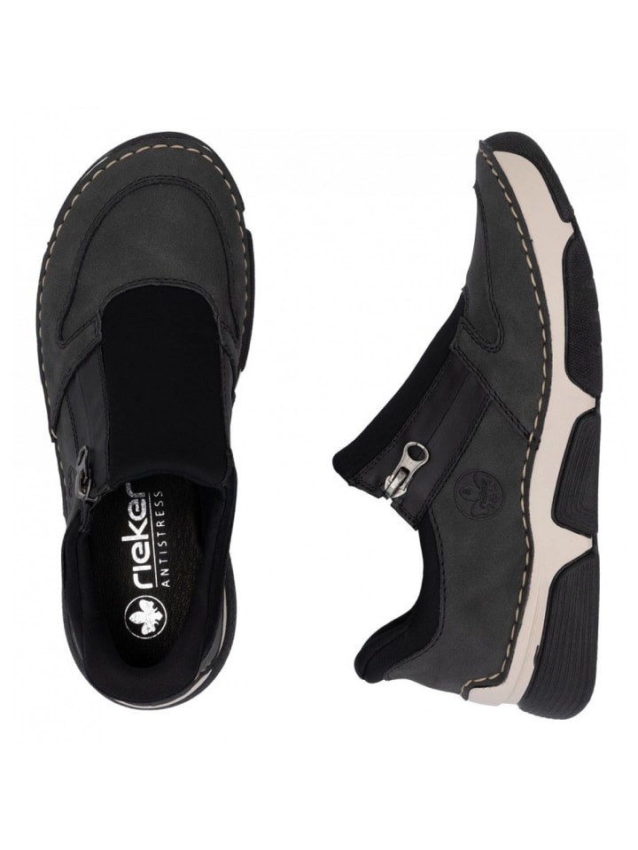 Женские туфли Rieker антрацитово-черного цвета. Материал верха: другой материал. Подкладка: другой материал. Стелька: другой материал. Подошва: другой материал.
