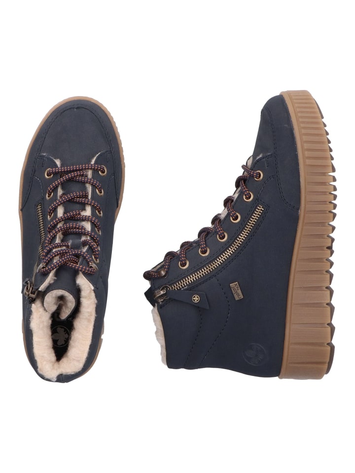 Стиль и комфорт - непревзойденный дуэт! Эти ботильоны Rieker на шнуровке - идеальный повседневный спутник. Продуманное сочетание классической шнуровки и практичной молнии позволяет легко надевать и снимать их, а мягкий воротник обеспечивает дополнительный комфорт. Нескользящая подошва обеспечивает надежное сцепление с любой поверхностью. Благодаря мягкой съемной стельке ваши ноги будут в комфорте в течение всего дня. Водоотталкивающая мембрана RiekerTEX в сочетании с уютной теплой подкладкой гарантирует, что ваши ноги останутся теплыми и сухими в любую погоду - холод и влага здесь не имеют шансов.