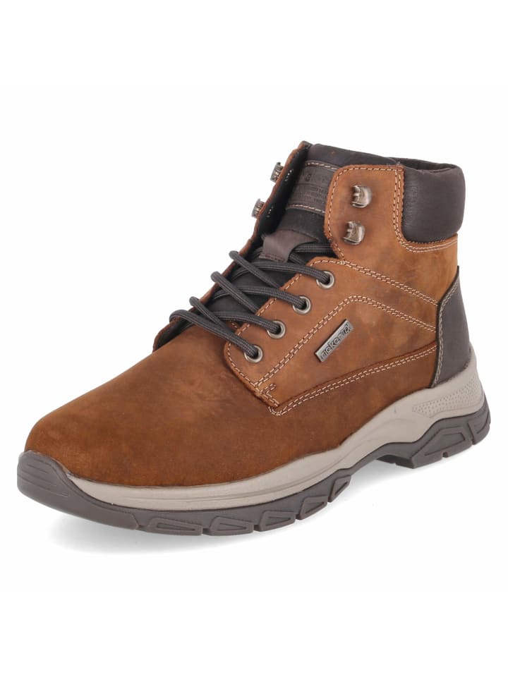 Эти мужские зимние ботинки Rieker, ориентированные на повседневную носку, станут надежным спутником. Коричневый верх из кожи и синтетического материала прочный и стильный, а круглый носок и мягкий воротник способствуют комфортной ходьбе. Теплая подкладка и текстильная стелька обеспечивают уют, а мягкая съемная стелька повышает комфорт и позволяет регулировать посадку. Водонепроницаемые и дышащие свойства сохраняют стопу сухой и сбалансированной, а противоскользящая подошва и усиленная пятка обеспечивают устойчивость. Практичные особенности включают шнуровку для точной регулировки и молнию для быстрого надевания. Классический крой и ненавязчивый брендинг дополняют дизайн. Модный совет: сочетайте с темно-зелеными брюками-карго, рубашкой из твила и шарфом крупной вязки для создания повседневного образа на открытом воздухе.