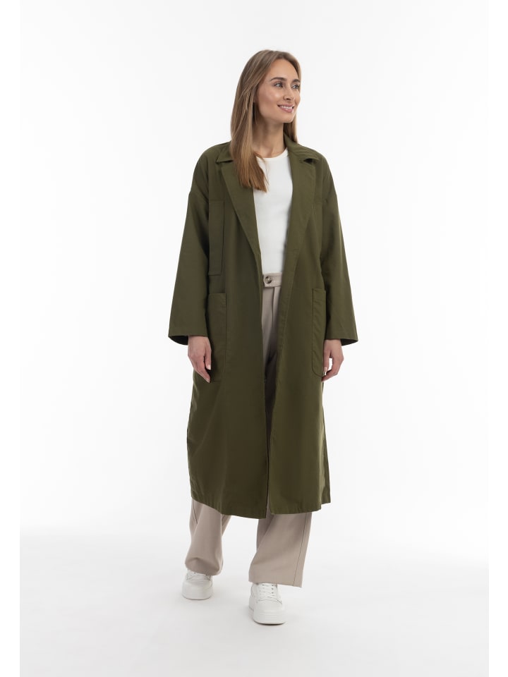 Классический, неподвластный времени шик RISA искусно воплощен в этом пальто для демисезонного периода. Модель прямого кроя, выполненная из прочного материала, сочетающего лен и хлопок, выглядит элегантно и лаконично. Ремень на талии из той же ткани, воротник с лацканами и большие накладные карманы элегантно дополняют этот стиль.