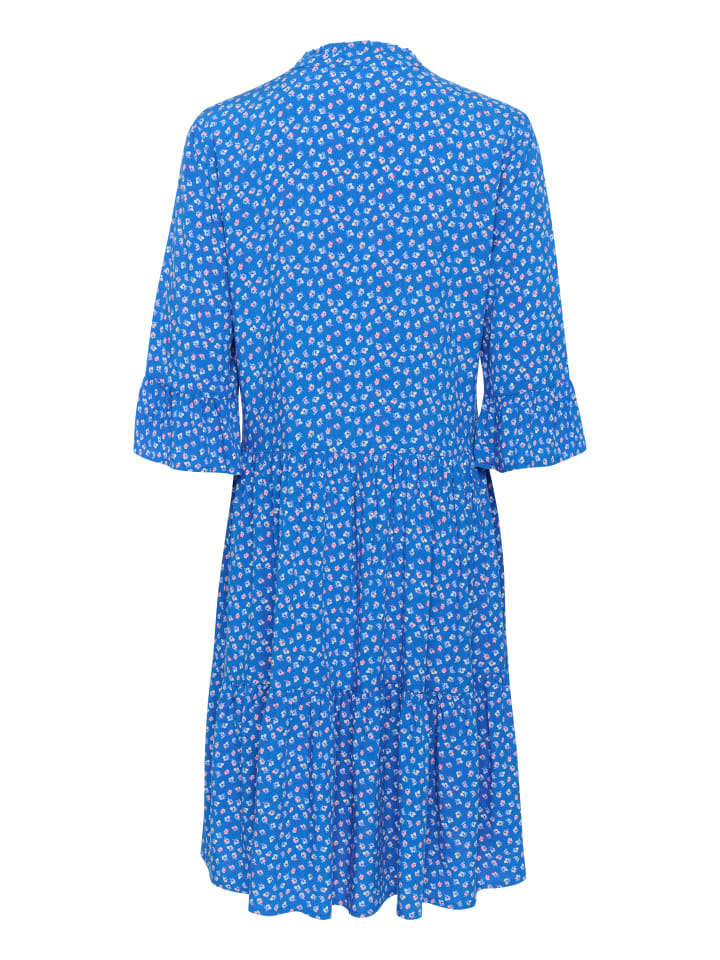Это свободное платье с V-образным вырезом и многоуровневым кроем обеспечивает комфорт и стиль. Рукава три четверти и длина до колена олицетворяют модную универсальность.