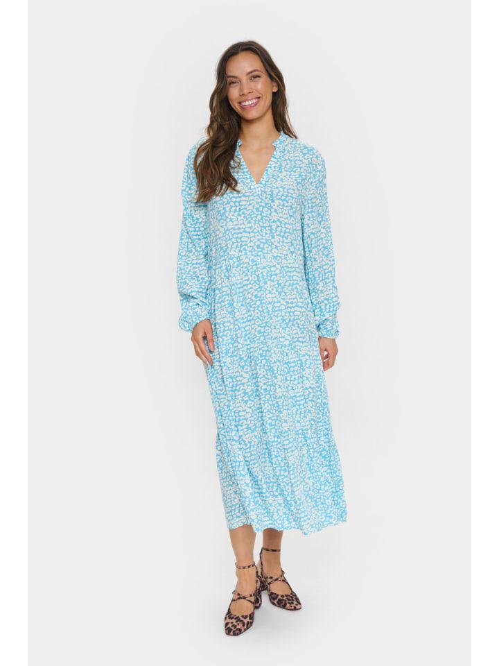 Это женское платье миди впечатляет свободным кроем, круглым вырезом и длинными рукавами. Многоярусная юбка создает изящный силуэт - идеально подходит для повседневной носки и особых случаев.